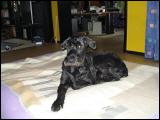 Mein Name ist Angie, ich werde im Februar 2008 schon 12 Jahre alt. Heute, 15.02.2008, bin ich in meinem neuen Zuhause eingezogen. Mein Herrchen hat mich abgeben müssen, da seine neue Partnerin eine Tierhaarallergie hat. 12 Jahre durfte ich mit ihm zusammen leben, seit meiner 8. Lebenswoche und dann, tja, dann musste ich gehen. So kam ich zu Silke vom Verein "Riesenschnauzer-in-Not". Bei ihr habe ich 3 Wochen gewohnt, mit dem Rüden Sam und der Hündin Bessy und es ging mir dort gut. Silke hat mich erstmal zum Tierarzt gebracht, mein Herz will nicht mehr so und ich hör auch fast gar nichts mehr. Hier und da hab ich ein paar "Beulen", aber in meinem Alter ist das normal. Naja, meine Frisur war übel, Silke hat mich erstmal schick gemacht und ein Foto ins Internet gestellt, damit ich vielleicht doch noch ein Zuhause für immer bekomme.