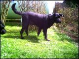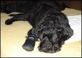 Das ist Sam, unser Riesenschnauzer. Er ist am 20. Februar 1999 bei -15° draussen geboren und hat als einziger den Wurf überlebt. Wir nahmen ihn auf einer Maitour mit, holten ihn aus dem einsamen Zwinger und er lebte mit unserem verstorbenen Balou zusammen. Sam war gerademal 8 Wochen alt als er zu uns kam. Er kannte nichts, nicht einmal Gras, nur einen kalten einsamen Zwinger. Wieder einmal ein Hund den niemand wollte. Daran sind wir gewöhnt und es scheint unser Schicksal zu sein. Die Zwei, Balou und er, waren ein tolles Team. Sammy ist ein richtiger Schnauzerdickkopf. Er brummt und knurrt und liebt alles und jeden, Erwachsene, Kinder, Katzen und Artgenossen. Spazierengehen ist seine grösste Leidenschaft, die hat noch Vorrang vor dem Fressen! Sam ist völlig unkompliziert und sehr verspielt und temperamentvoll. Was er überhaupt nicht mag ist das Scheren und Bürsten, da läuft er schneller als wir gucken können :o) Das Autofahren war auch niemals seine Leidenschaft, er hasste es. Seit 2 Monaten fährt er sogar Auto, wir haben es geschafft ihn im Alter von 4 Jahren noch daran zu gewöhnen. Da er einen ausgeprägten Spieltrieb hat und wir beide berufstätig sind, haben wir uns einen Wunsch erfüllt und Sam wieder einen Artgenossen geholt, Merlin unsere blaue Dogge, ein langjähriger Wunsch meines Mannes. Auch die Beiden waren schnell Freunde. Sam ist eine Seele von Hund, sehr sensibel, gelehrig und total verschmusst. Das traumatische Erlebnis mit Balou hat er schnell vergessen. Seine Aufgabe als Wachhund nimmt er allerdings sehr ernst. Er meldet jeden der sich dem Grundstück nur nähert. Besuch wird lautstark von ihm angemeldet aber sehr liebevoll begrüsst. Auch mit der Katze, die uns zugelaufen ist, hat er schnell Freundschaft geschlossen. Wir sind sehr glücklich ihn bei uns zu haben und ihm ein schönes Zuhause geben zu können :o) Unser Sam hat schon einiges mitgemacht. Er lief im Alter von 7 Monaten in einen Weidezaun, zappelte und machte uns Angst. Auch das hat er gut "weggesteckt". Als Sam 3 Jahre alt war, hatte er einen "Hormonkollor" und wir nicht´s zu lachen. Naja, nachdem er sich auch noch unseren Tierarzt vornahm, liessen wir ihn kastrieren, erfolgreich. Dann folgte die Beisserei mit Merlin. Merlin wollte nur die Rudelführung übernehmen, wir waren 1 Stunde nicht da, da geschah das Unvermeidliche. Sam knurrte Merlin an, was Merlin falsch interpretierte, schon was es passiert. Weder wir noch unser Tierarzt glaubten, dass Sam die folgende grosse OP überstehen würde. Seine Brust war weit aufgerissen, bis zur Lunge, man konnte sie richtig "aufklappen", das Ohr hin runter und er hatte noch einige "Kratzer". Aber, er hat es geschafft, dank unserem Tierarzt, viel Liebe und Zuwendung. Leider war das noch nicht seine letzte OP. Gegen seine Arthrose bekommt er Schmerzmittel und läuft wieder gerne. Ende Oktober 2007 entdeckte unsere Frisöse einen "Knubel" am Zeh, den wir vor dem Scheren nicht sehen konnten wegen der vielen Haare. Direkt nach dem Scheren suchten wir den Tierarzt auf und mussten eine böse Überraschung erleben. Sam hatte ein Plattenepithelkarzinom (Die Mittel- und Riesenschnauzer sind bekannt für die sehr gehäuft auftretenden Plattenepithelkarzinome an den Zehen, die auch mehrere Zehen gleichzeitig oder nacheinander erfassen können). Es wurde sofort ein OP-Termin vereinbart, der Zeh entfernt und auch diese Operation hat Sammy gut überstanden, er tobt wie ein junger Hund mit Chiba und spielt. Kurz vor Weihnachten 2007 stellten wir fest, daß Sam wieder einen Knubel zwischen den Zehen hatte. Diesmal an der vorderen Pfote. Da uns dies Angst machte, liesen wir sofort den Tierarzt nachschauen. Er sagte uns, es handelt sich um eine Warze, ungefährlich aber sie stört Sam beim Laufen. Wir werden sie in 2008 entfernen lassen um kein Risiko einzugehen, da er an der hinteren Pfote schon einen Zeh weniger hat.