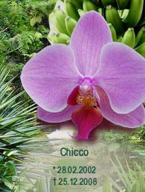 Chicco ist uns leider schon vorausgegangen :-( Mein lieber Chicco, tief traurig bin ich weil Du schon so früh gehen mußtest, noch vor Deinem 8. Geburtstag (* 28.02.2002). Wir vermissen Dich so sehr Chicco. Du reißt ein rießiges Loch in die Familie und Pascha vermißt Dich auch ganz doll. Du warst mein Leben für mich, warst immer an meiner Seite gabst mir immer Kraft in schwierigen Zeiten. Ich hoffe Du bist im Hundehimmel gut aufgenommen worden und kriegst dort Schokodrops in Hülle und Fülle. Ich vermisse Dich und werd Dich niemals vergessen. In meinem Herzen trag ich Dich bei mir bis wir uns wiedersehen. Deine Uli und Renaterl