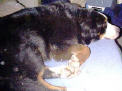 Mein Herrchen hat vor ein paar Tagen (2005) einen Knubbel hinter meinem Ohr entdeckt, den hat mir jetzt die Tierärztin rausgeschnitten und ihn untersuchen lassen. So eine Narkose haut einen echt um! Ich bin froh, daß ich das Ding los bin. Ich weiss, dass sich Herrchen Sorgen um mich macht, braucht er aber nicht. Der Knubbel (es waren 2 und dazu noch bösartige Tumore) ist ja jetzt weg und damit werden wohl auch endlich meine Ohrenentzündungen verschwinden und dann kann ich wieder mit Herrchen richtig toben, da wird er sich freuen und wieder lachen. Ich überrasche ihn gern....wenn er schön schläft, spring ich in sein Bett und spiel Matratzentrampolin, das macht Spaß :o)