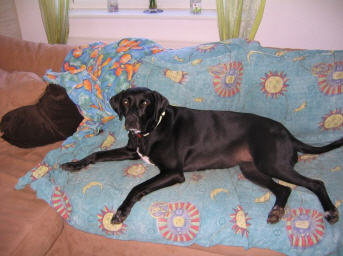 Gestern, am 20.09.2007, ist Bogi bei Frau Müller eingezogen. Sie fährt super Auto, geht gut ohne Leine und hat sich heute schon mit dem Kater angefreundet. Was sie gar nicht mag ist, sich ein Halsband anziehen lassen, so geht sie mit einem Brustgeschirr spazieren, was auch entlastender ist für den Halswirbel. Bogi trauert nicht, sie fühlt sich sichtlich wohl und tobt durchs Haus und den riesen Garten. Wir freuen uns für Bogi und Frau Müller :o) |
